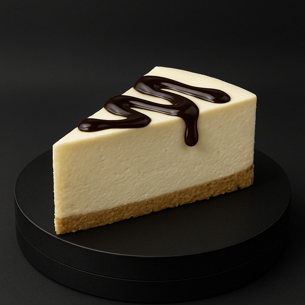 A velvety cheesecake slice on a buttery biscuit base, crowned with a generous layer of tangy-sweet blueberry paste. A perfect blend of creamy and fruity goodness in every bite!
