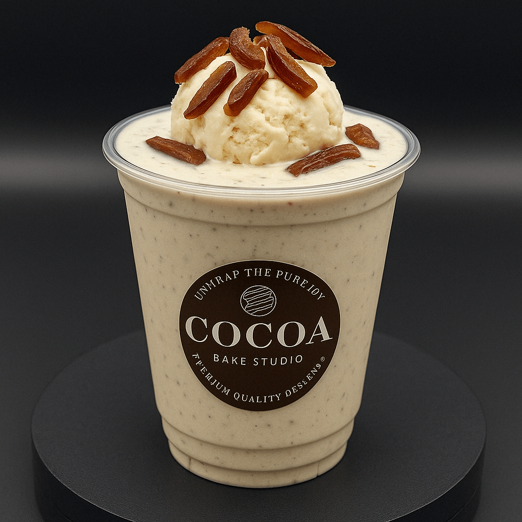 A rich and wholesome fusion of creamy khoya and naturally sweet dates, blended into a thick and velvety ice shake. This exclusive creation offers a nourishing yet indulgent experience, rooted in tradition and perfected for a refreshing, guilt-free treat.