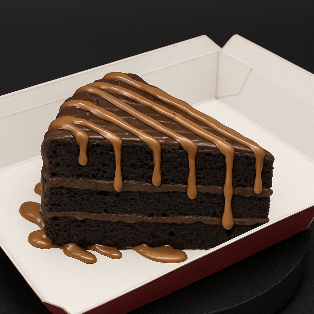 A thick, fudgy slice of our iconic Matilda Chocolate Cake– moist layers of rich chocolate cake filled and frosted with smooth chocolate ganache. A chocolate lover’s dream in every bite.